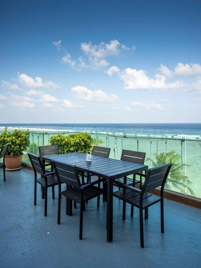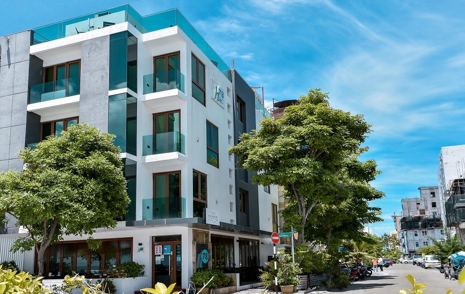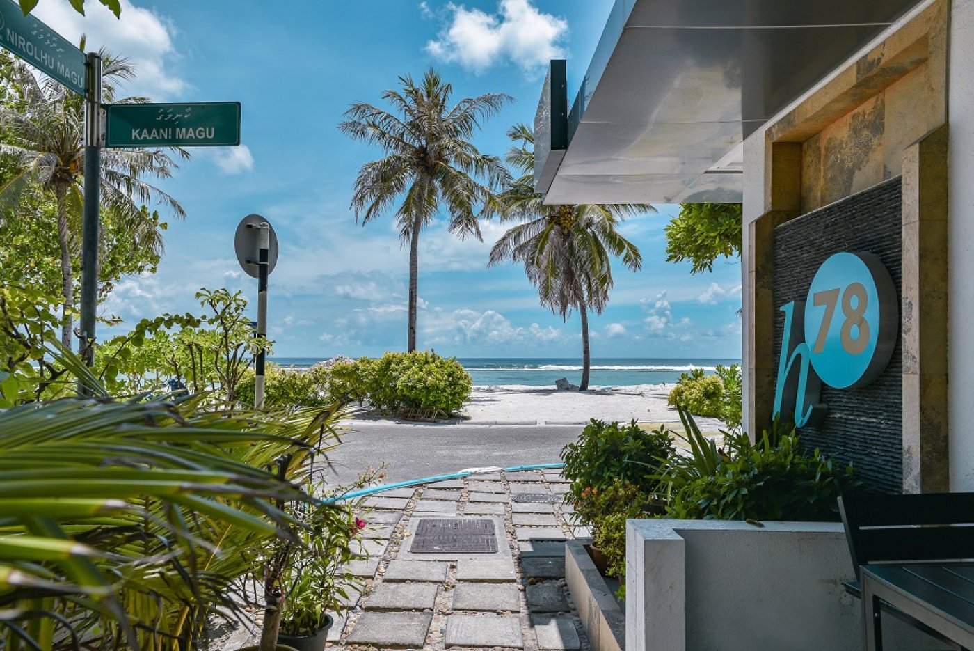 h78 is an award-winning beach front hotel located HulhuMale with breathtaking views and a relaxing ambiance. The hotel located at only 2 km from the Velana International Airport, which is a 15 minutes’ drive. The hotel gives you a view of crystal clear waters along with the white sandy beaches of Maldives. The perfect place to enjoy a cup of coffee, have an expertly crafted mocktail and satisfying a light bite or have a taste of the local cuisine.